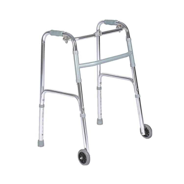 Walking Frame – Rollator Front Wheels Folding is a walking frame giving an increased level of support and security when walking. The two wheels at the front allow these frames to be pushed by gliding them across the floor and the ferrules on the back two legs offer additional stability. The walker is foldable which allows easy storage.